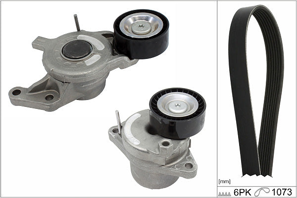 The timing belt system controls the combustion process and the the camshaft drive operation, which opens and closes the valves at the right time. To do this consistently requires accurate tensioning throughout the whole timing belt route, so that all tensioner and deflection pulleys operate in perfect synchronisation. The requirements placed on drive components has continuously increased in the last few years. Higher loads in the engine compartment combined with a longer life expectancy means that garages have to replace all of the belt drive system components at the same time, in line with the recommended change point specified by the vehicle manufacturer.As a technical partner and supplier of complete drive systems to the world's leading vehicle producers, INA offers the widest range of OE content Timing Belt KITs available to the UK aftermarket.INA KITs also contain everything needed for a professional belt system service, right down to the last nut, bolt and washer. If the application features a timing belt driven water pump, INA also offers a comprehensive range of Timing Belt KIT+ Water Pump references to suit.