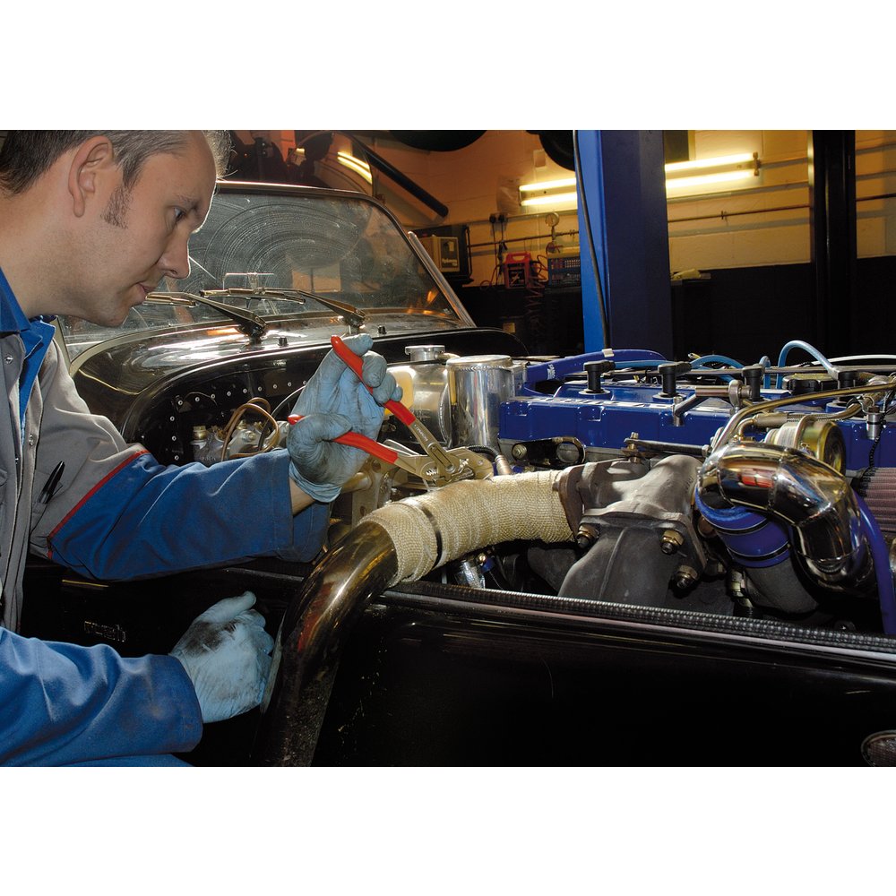 Professional Quality, designed for working on nuts and unions, especially components with finished surfaces, ie. plated or burnished. The unique cam action jaws give a secure and powerful grip which increases as more pressure is applied. The cam also allows the tool to be used with a ratcheting action for speed fastening. Plastic coated handles.
