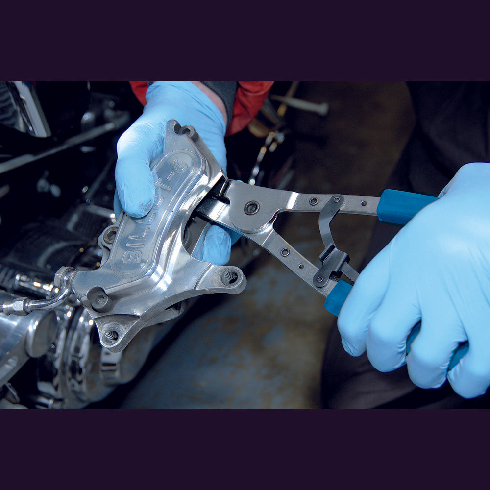 Expert Quality, for the removal of seized pistons without damaging outer piston surface. Knurled clamp blocks allow secure grip of inner piston face. Self - locking mechanism ensures tight grip on piston during removal.