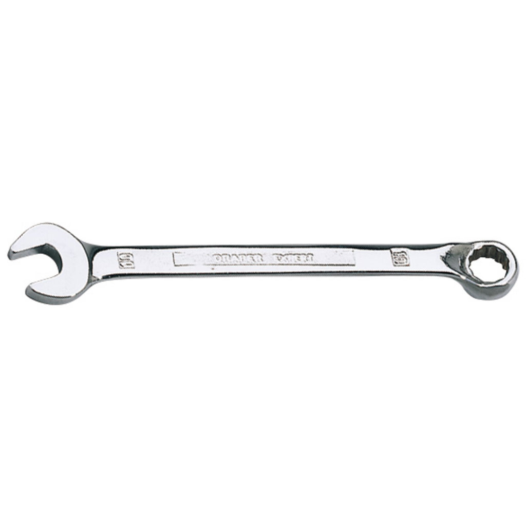 Draper Expert HI-TORQ® deep offset ring end cranked at 15°. Open end set at 15°. Long pattern forged from chrome vanadium steel, hardened, tempered, chrome plated and fully polished throughout.