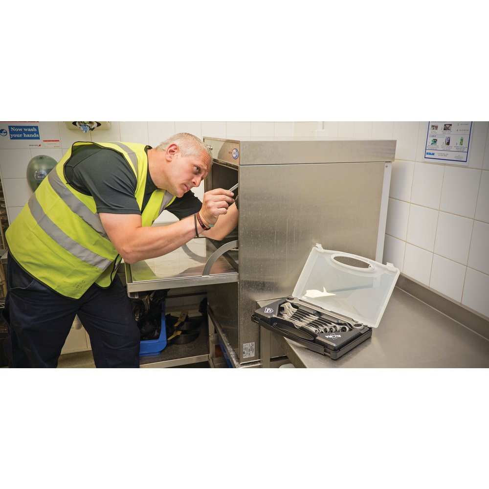 Professional Quality, forged from stainless steel hardened, tempered. Bi-hexagon ring and jaw offset at 15°. These spanners are aimed at applications where cleanliness is paramount, specifically on stainless steel fittings where a ferrous based spanner would transfer material to the fixing, promoting the formation of rust. With no need to plate the spanner there is no danger of chrome plate flakes contaminating the work area.