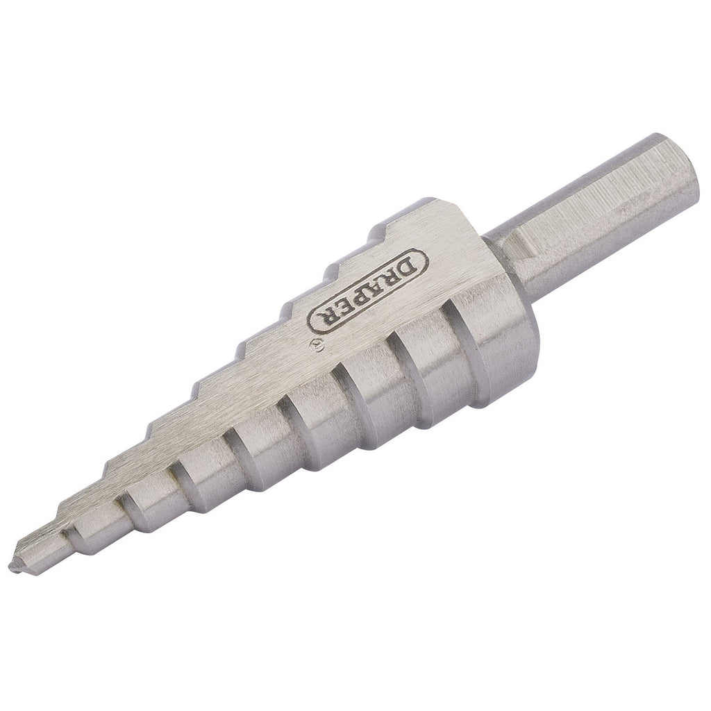 Step drill bit with 2mm increments perfect for drilling into steel, brass, copper, aluminium, wood and plastics. Manufactured from good quality high-speed steel, correctly hardened for a longer life. Drill steps marked at graduations: 4, 6, 8, 10, 12, 14, 16, 18, 20mm.