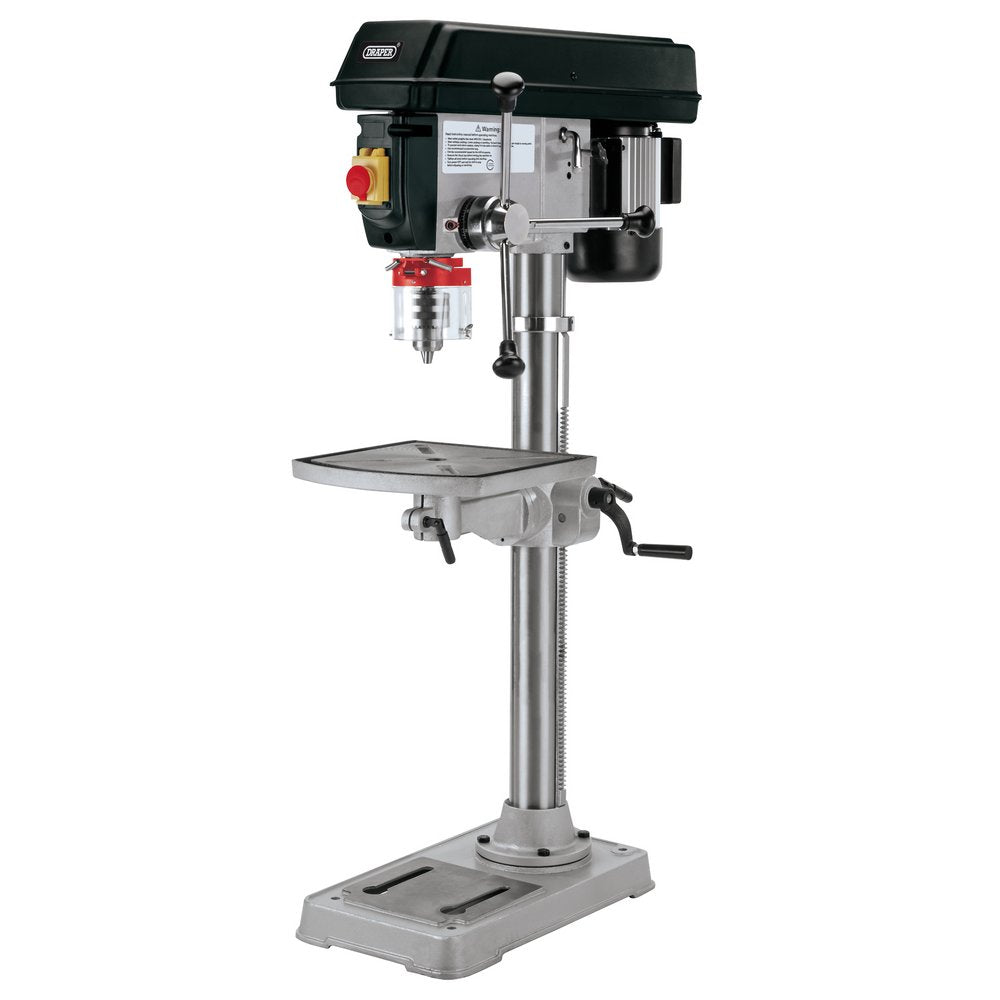 12 speed bench drill with a 20mm drilling capacity. Ideal for automotive and maintenance workshops. The square table is fitted with a smoothly operated rack and pinion mechanism for easy adjustment. Fitted with a No-Volt safety release switch, depth stop and chuck guard. Manufactured with a steel motor casing and lockable pulley cover. Supplied with a BS approved non-rewireable moulded plug and 1.8m (approx.) cable.