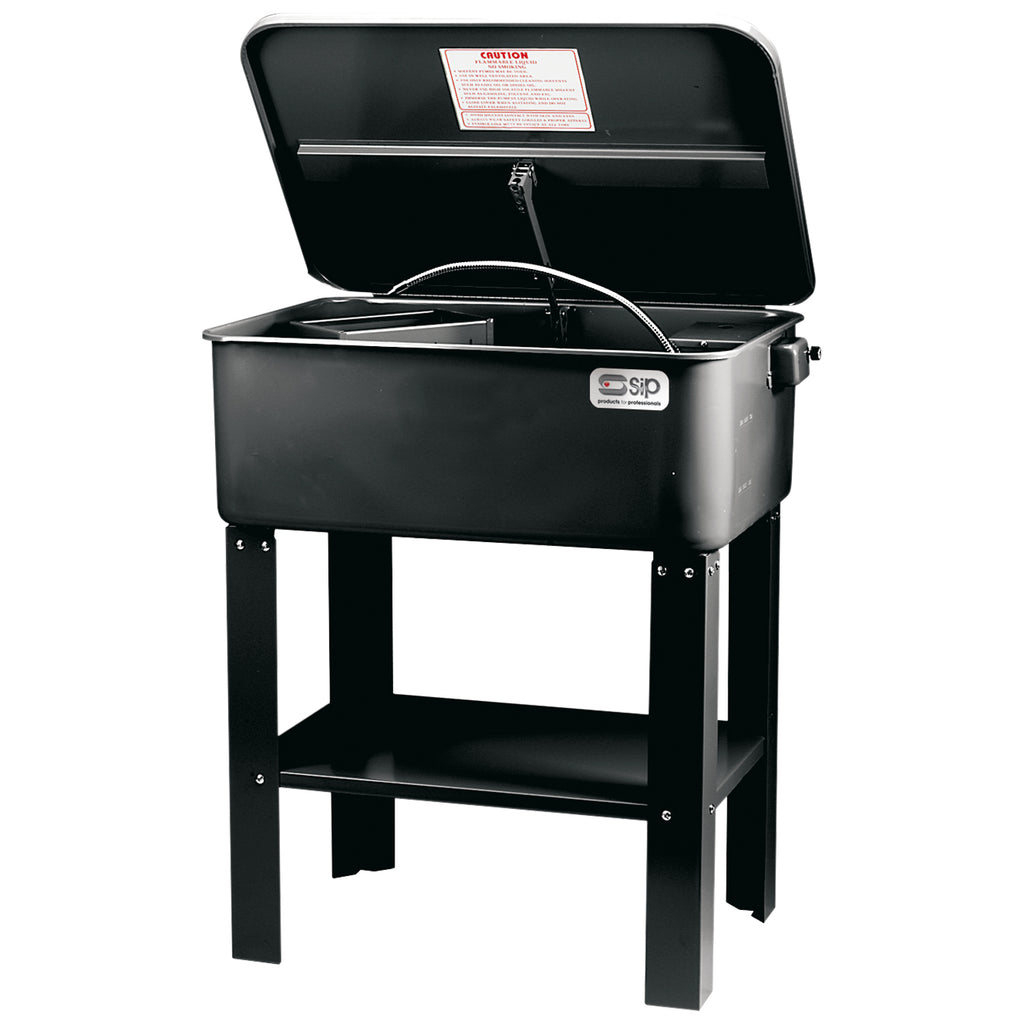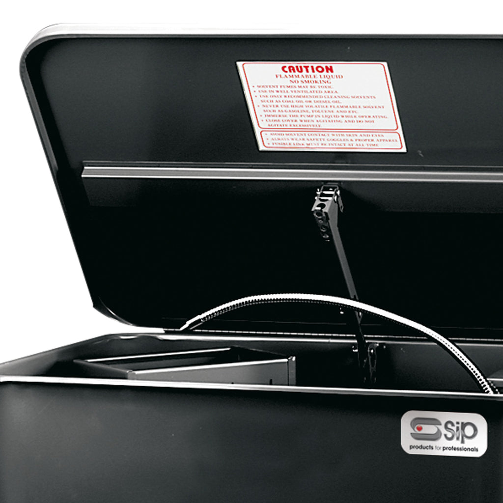 The SIP 20 Gallon Parts Washer is built from heavy-duty steel, perfect for cleaning debris, dirt, grime, oil, grease, fluids, and more from workpieces, doing so safely via a self-latching lid with fusible link which will snap shut in the event of fire, substantially reducing any risk.