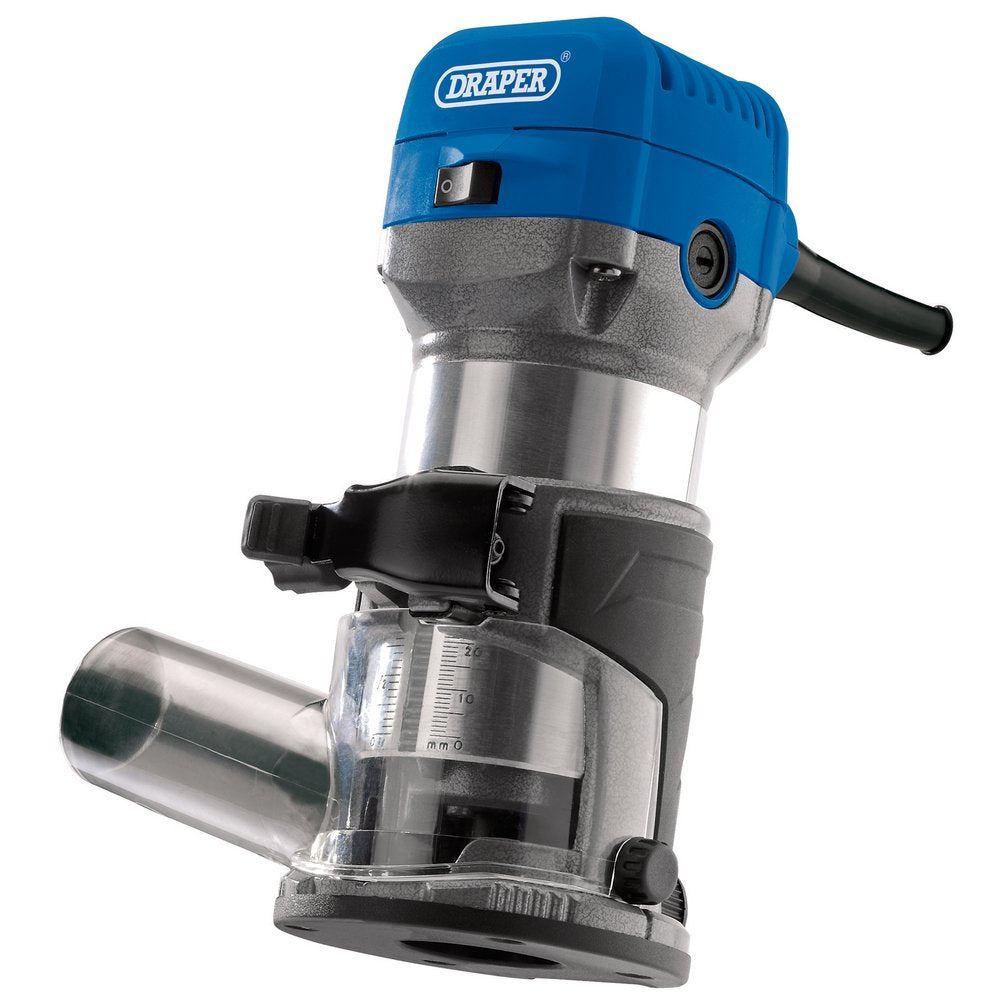 A compact, powerful router trimmer with high quality, solid aluminium body. A lightweight tool, ideal for trimming, edge forming, slot cutting and decorative work. Fitted with a variable speed motor, an adjustable parallel fence, an adjustable depth guide and a spindle lock. Supplied with parallel fence guide, trimming guide, spanner and 6mm, 1/4", 8mm collets. The plunge base is available separately.