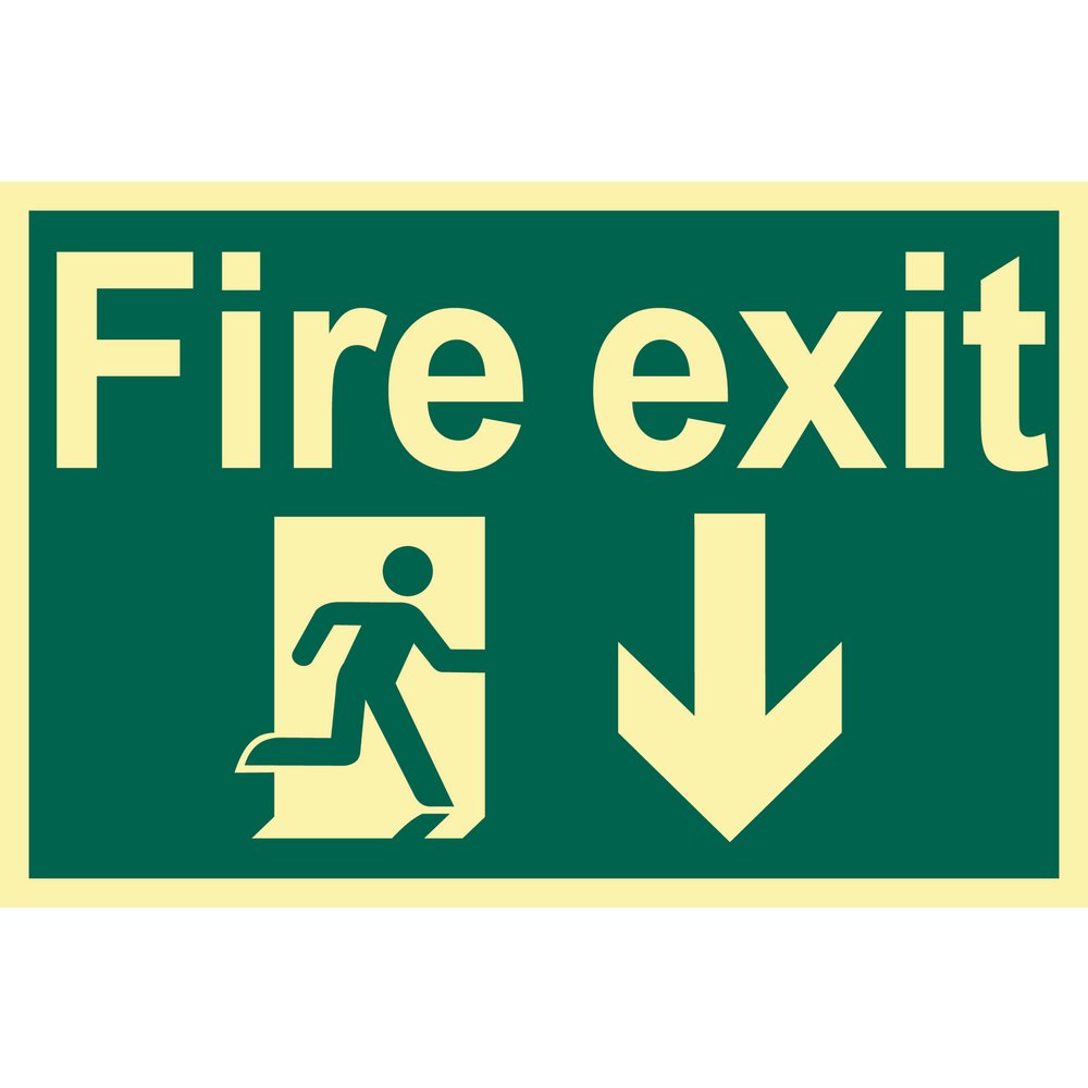 Glow In The Dark 'Fire Exit Arrow Down' Safety Sign