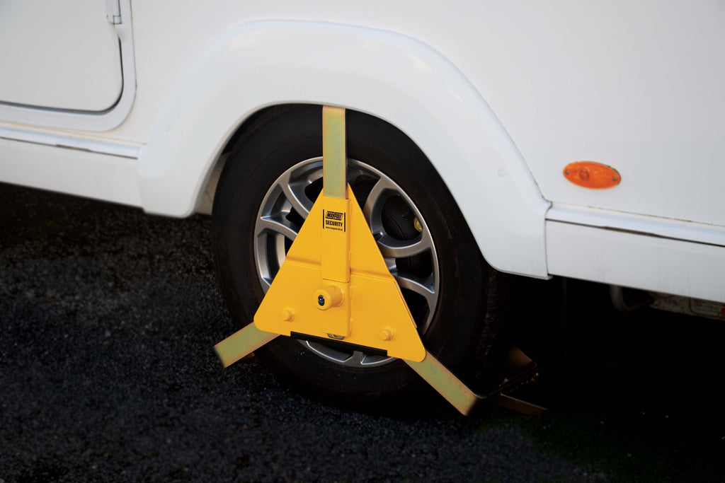 The Maypole MP5434 Triangular Wheel Clamp provides high-security protection for vehicles with 10'' to 14'' wheels, including cars, trailers, and caravans. Its robust steel construction ensures durability and resistance against tampering, while the triangular design offers a strong, secure grip on the wheel. The bright yellow finish acts as a visible deterrent, and the adjustable fit allows for quick and easy installation. Ideal for securing your vehicle when parked or stored.