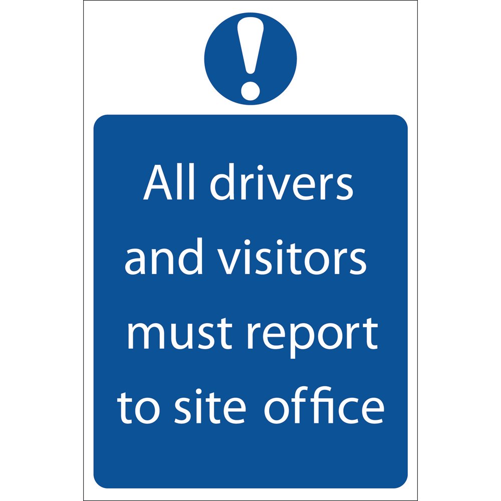 Manufactured from 1mm PVC with strong adhesive for fixing to the wall. Printed with UV and fade resistant ink stating 'All Drivers And Visitors Must Report To Site Office'. Size 400 x 600mm.