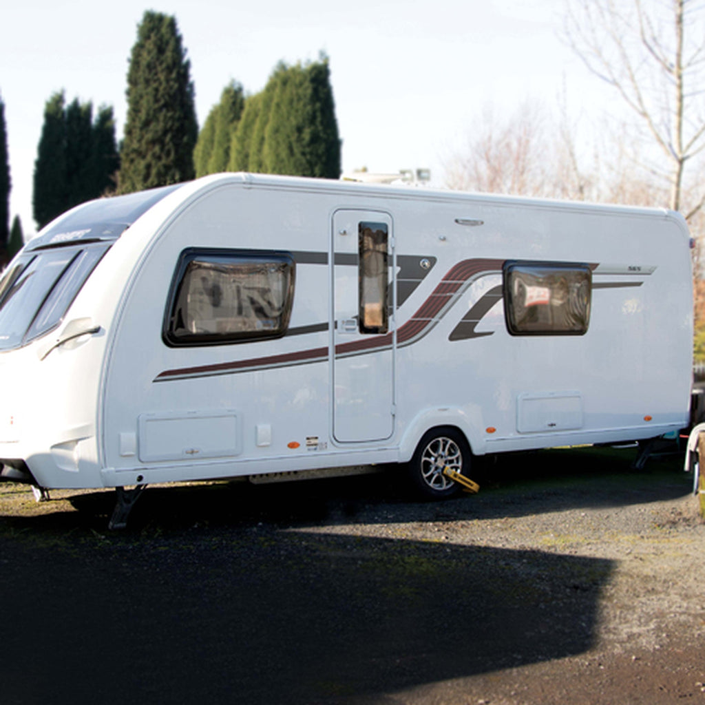 - A highly visible deterrent which effectively protects the caravan, trailer or motorhome from tow-away theft by preventing wheel rotation