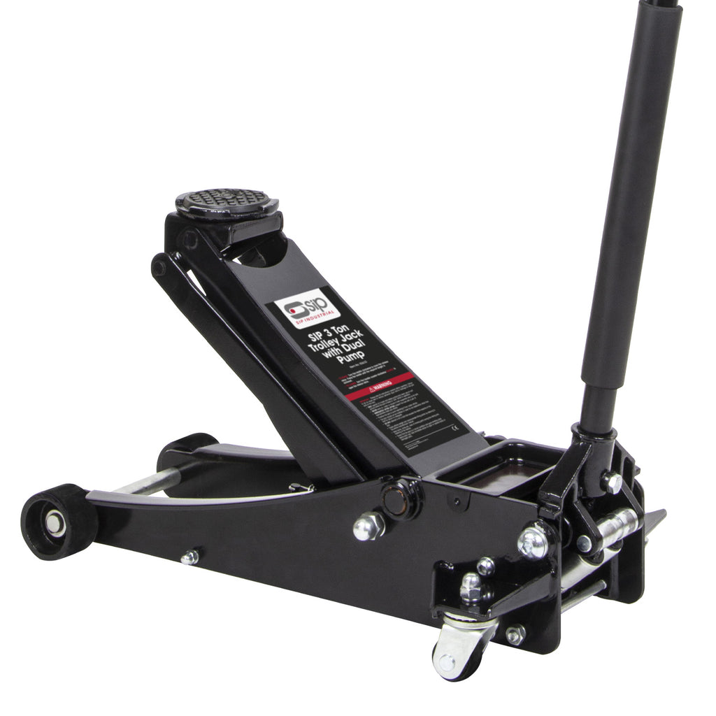 The SIP 3 TON Low-Profile Trolley Jack is suitable for a range of demanding lifting applications in garages and workshops, including sports and performance cars, thanks to a robust extra low-profile design manufactured from heavy-duty, high-quality steel.Despite the extra low-profile design, this jack has a max. lifting height of 508mm.An integrated Quick-Lift system, complete with dual pumps, is designed to reduce the user effort exerted by quickly, safely and efficiently raising the saddle to the lifting point.For further user safety, this jack is fitted with a bypass system to prevent overloading or risk of damage to the jack itself. A removable 2-piece handle with comfortable rubber grip, plus durable wheels and castors ensure easy positioning and manoeuvrability.• 3 TON maximum weight capacity• 80mm to 508mm adjustable lifting height• Extra low-profile design for lower vehicle clearances• Manufactured from heavy-duty steel for added durability• Dual pump Quick-Lift system raises the saddle efficiently• Safety bypass system protects the jack from overloading• Extra-large saddle with rubber pad for secure comfort• Removable 2-piece handle with comfortable rubber grip• Mounted on durable wheels and castors• SIP 2-Year Standard Silver Warranty