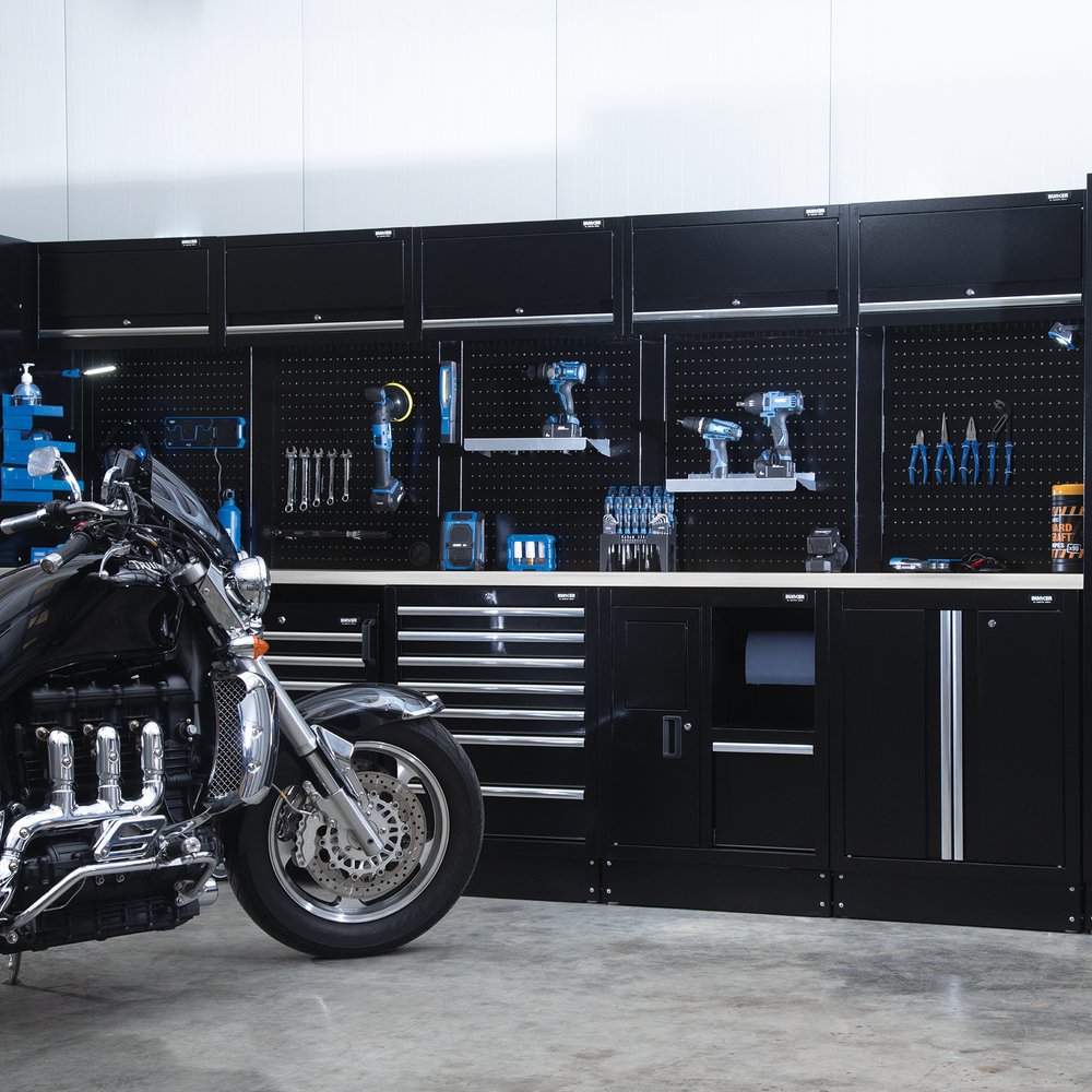 Part of the BUNKER® modular storage system. This stunningly designed premium-quality steel unit has five drawers embellished with stylish aluminium handles. Each drawer has a smooth soft-close operation and is lined with lush foam to protect your tools. The feet of the cabinet are adjustable for optimal positioning on an uneven floor. The cabinet’s matt black textured finish is highly durable, thanks to the industrial powder coating that protects against scratches, wear and corrosion. It has an integral lock for security and is supplied with two keys. The cabinet is delivered fully assembled and measures W 680 x H 910 x D 458mm. It can be used as an individual storage cabinet in conjunction with either a stainless steel or hardwood worktop or as part of the BUNKER® modular storage system, which includes 24 clever modular options. It comes supplied with all the required fittings for simple installation. For your quality assurance, all BUNKER® units include a 10-year warranty.