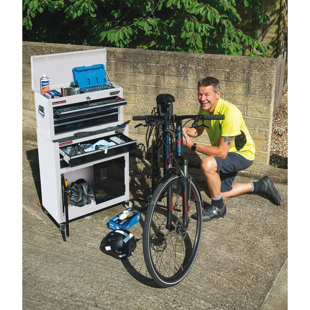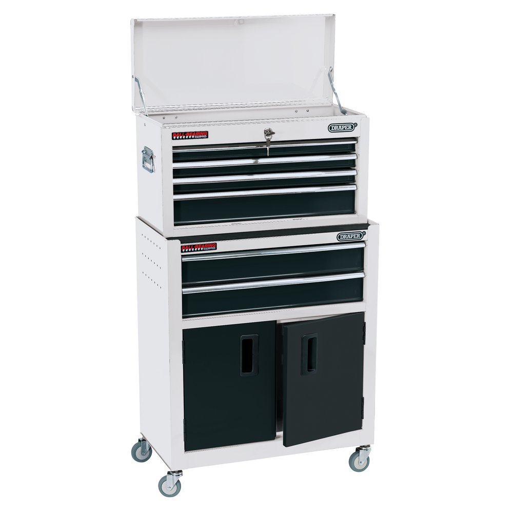 9 drawer roller cabinet and tool chest manufactured from sheet steel with a powder coated finish and aluminium effect trim. Drawers are fitted with ball bearing runners for smoother operation. Fitted with heavy duty handles, swivelling castors and a secure integral locking system Supplied with two keys.