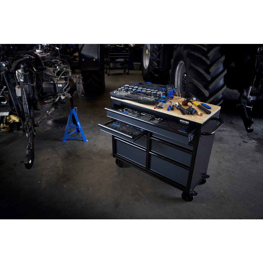 Hugely comprehensive composite toolkit comprising literally hundreds of pieces ideally suited to help keep busy farms running smoothly. Items include essentials such as screwdrivers, spanners and socket sets as well as tools (an inspection mirror, for example) which can so easily be overlooked until they are urgently needed. Choose your preferred tool chest, roller cabinet or both to house this great selection of essential tools.