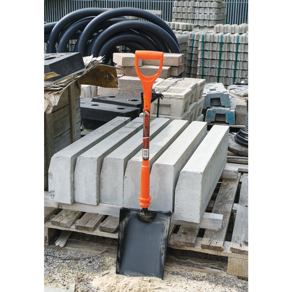 Fully insulated taper mouth shovel designed for working on or near live cable and wires. Individually tested to 10,000V, guaranteeing safe working on 1,000V and complying to the BS 8020: 2011 standards. Manufactured with an epoxy fibreglass core and attached to a fully enclosed insulated shaft with hand slip guard. Each shovel is Supplied with a certificate of conformity, which correlates with a unique traceability number embossed on the shaft.