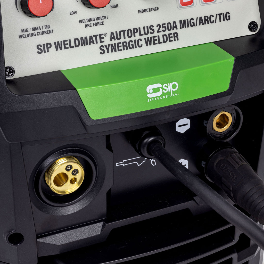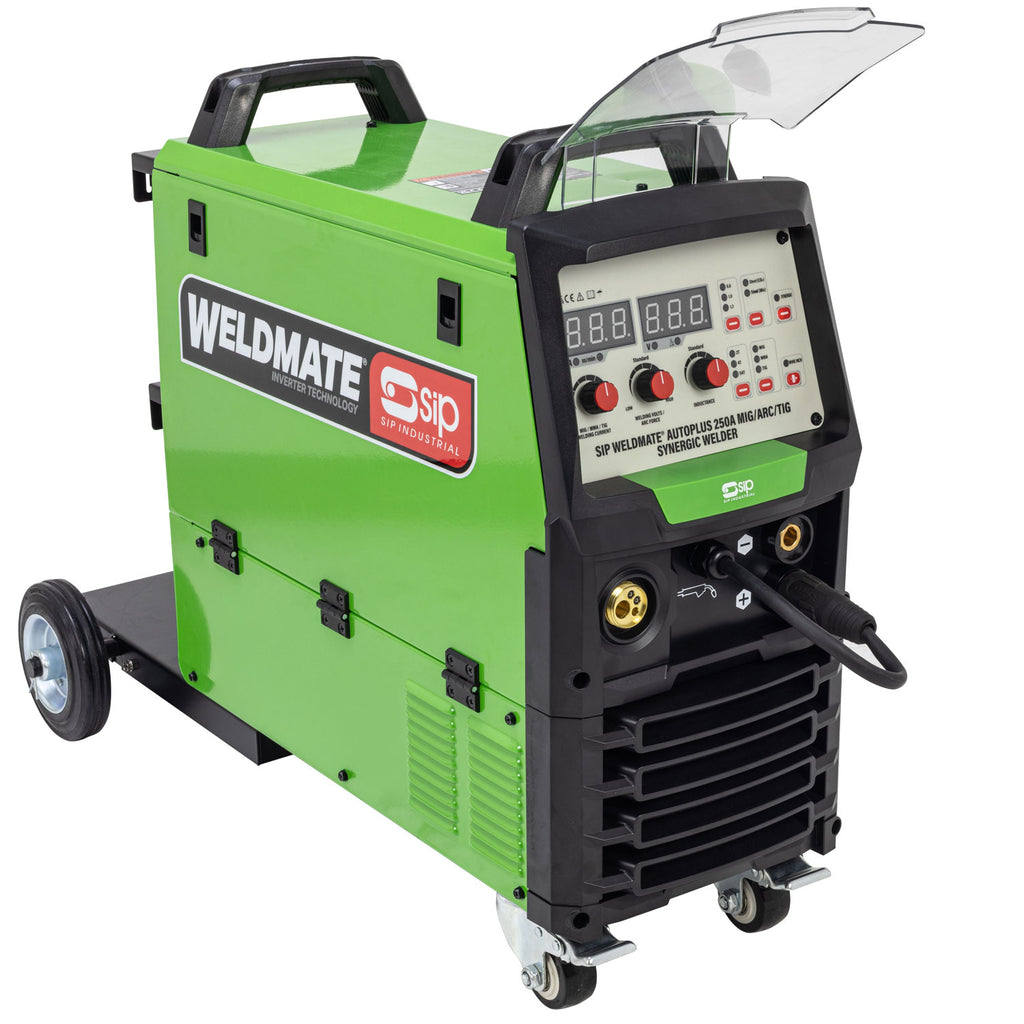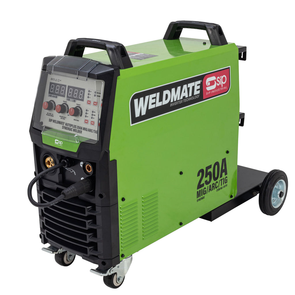 The SIP WELDMATE® AUTOPLUS 250A MIG/ARC/TIG Synergic Welder is a multi-process inverter welder specifically designed for use in automotive and garage environments.