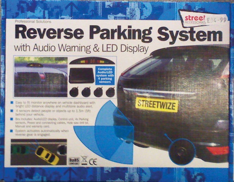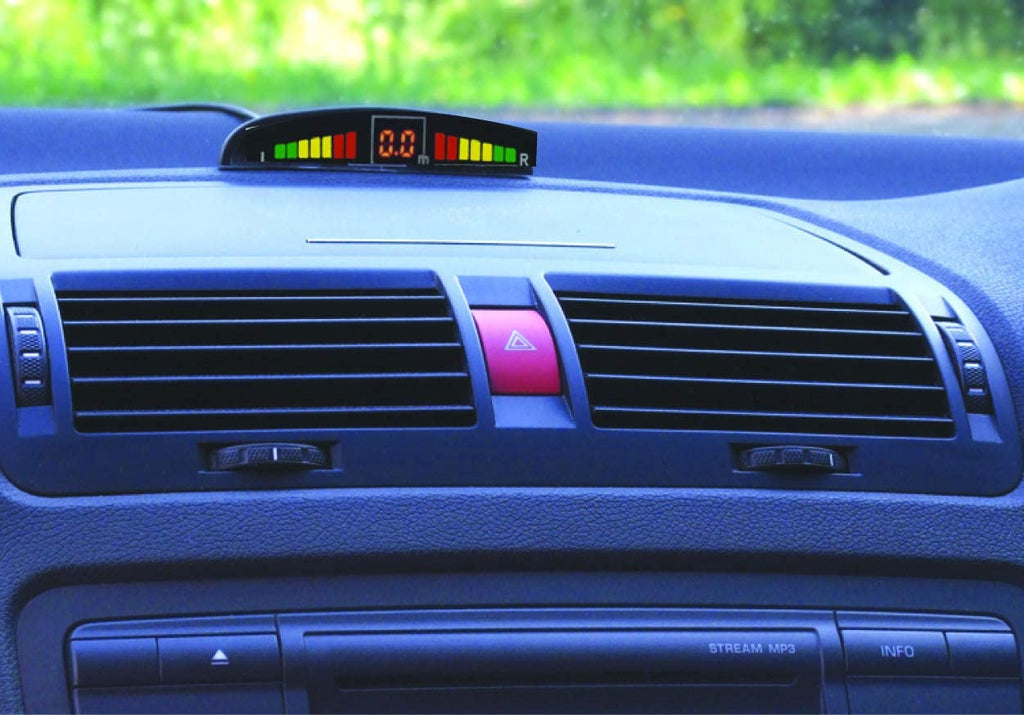 The reverse parking system uses 4 sensors to detect people or objects up to 1.5 m (5 feet) behind the vehicle.