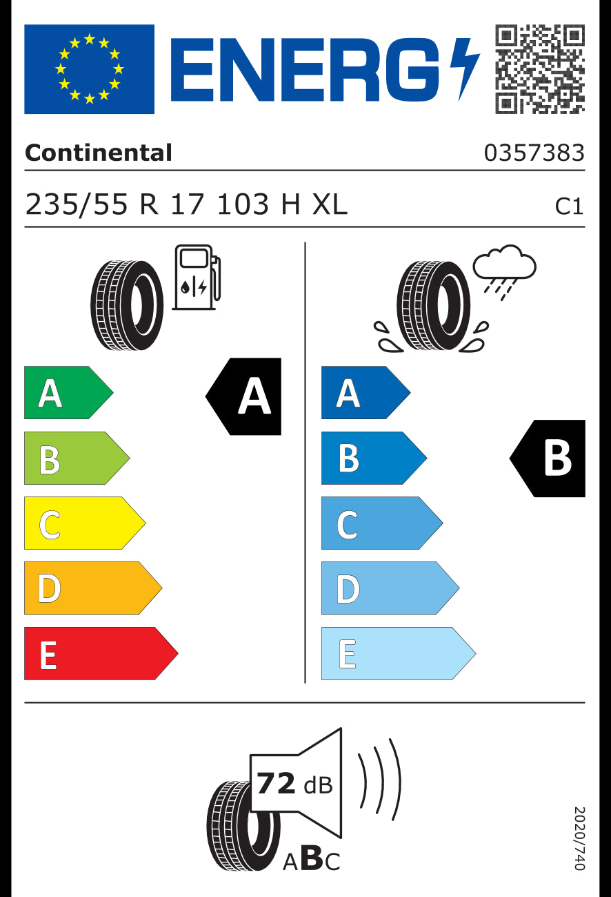 Size - 235/55/17 95T, Fuel Efficiency - A, Noise (dB) - 72, Wet Grip - B, Runflat -No