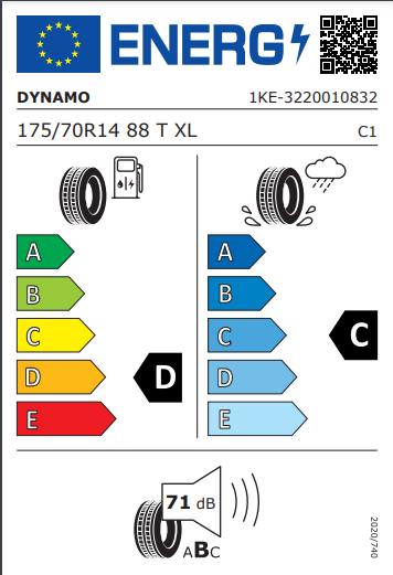 Size - 175/70/14 88T, Fuel Efficiency - D, Noise (dB) - 71, Wet Grip - C, Runflat - No