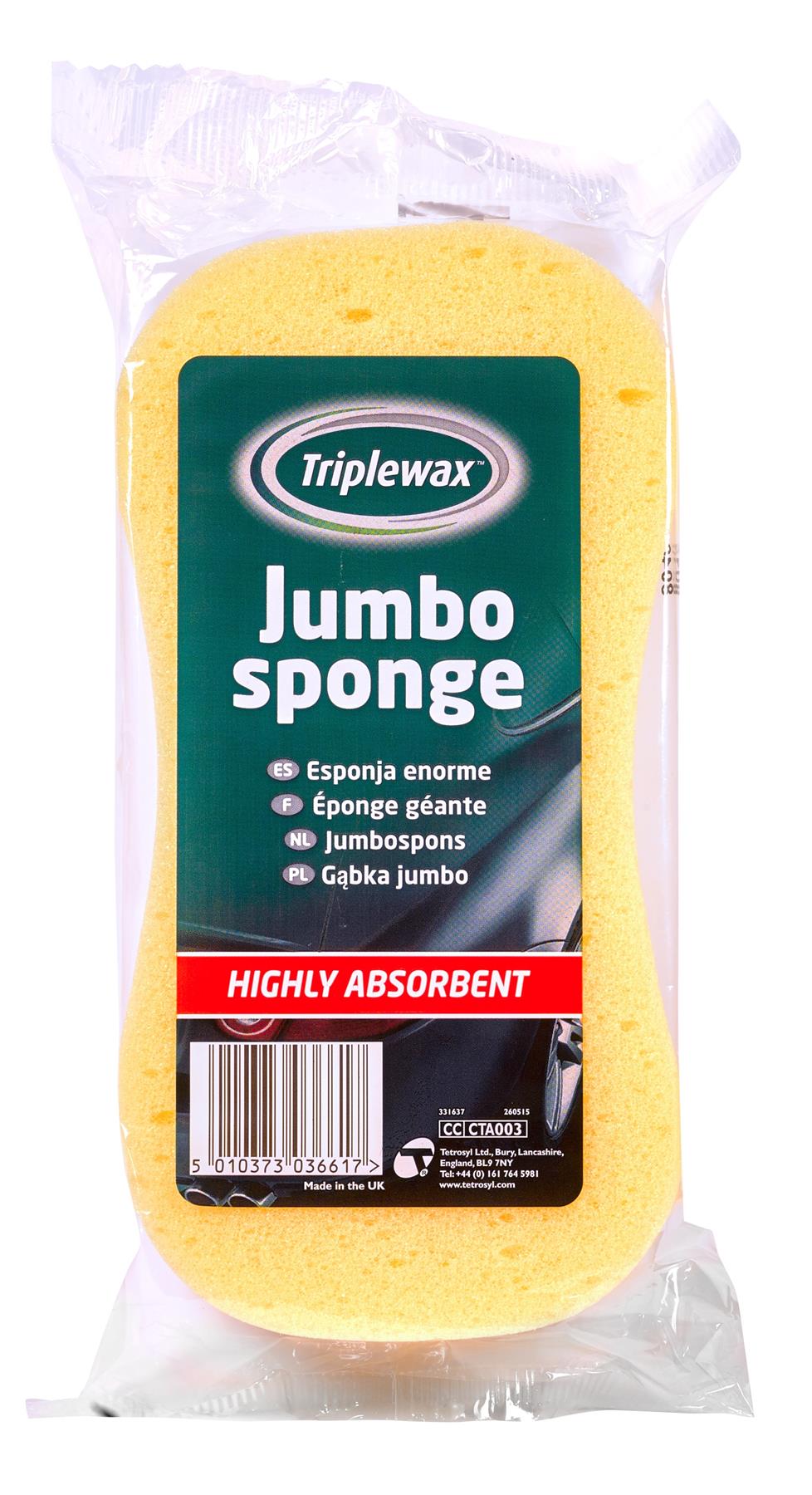 Triplewax Jumbo Sponge is super absorbent and removes dirt and grime from paintwork, glass, trims, wheels and tyres. The jumbo surface area means you get effective cleaning with minimum effort, in less time, and the super soft surface will not scratch or damage the surface underneath.
