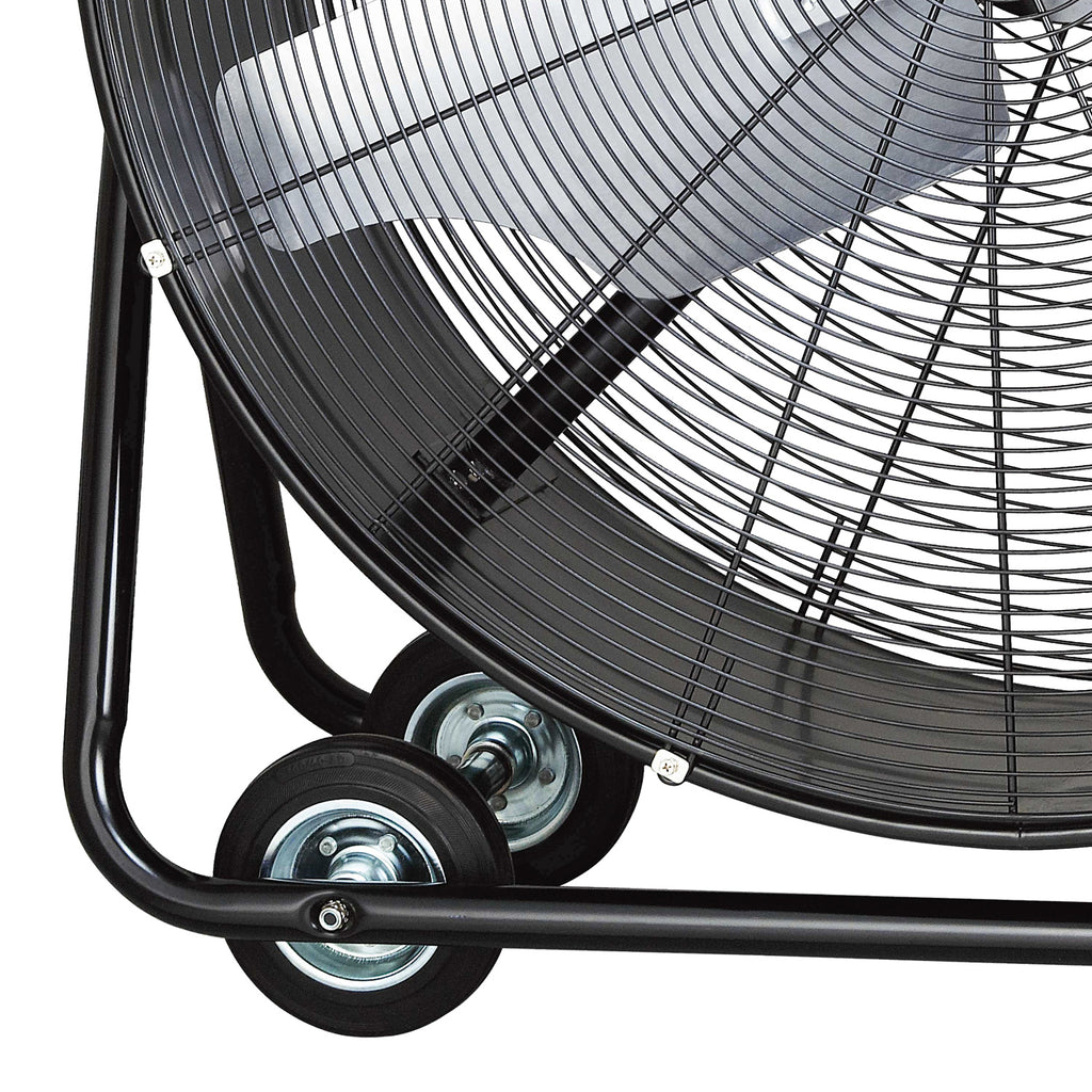 The SIP 36" Heavy-Duty Drum Fan delivers powerful, variable speed airflow to help cool spaces and freshen stale air in a variety of indoor industrial environments.Wheel-mounted on a cradled steel frame, the drum enclosed, heavy-duty 3-blade fan can be rotated between 360° on its vertical axis to maximise circulation and coverage.Fans are essential in helping to provide improved air quality to indoor spaces.Applications & uses: Delivers powerful variable speed air circulation to indoor spaces. Perfect for industrial, commercial and agricultural workshop areas.SIP 2-Year Standard Silver Warranty• Powerful airflow: A heavy-duty 3-blade fan is powered from a 410w motor to deliver powerful and consistent airflow coverage.• Variable speed settings: Two settings for variable fan speed: 860rpm and 950rpm.• Dynamic airflow function: The adjustable tilting fan head can be rotated 360° on its vertical axis for greater airflow coverage.• Outstanding mobility: The wheel-mounted, cradled steel frame is fitted with pull handles which allows the fan to be easily moved between locations for use.• Enhanced safety features: Fan blades are fully enclosed with solid mesh steel guarding for greater user safety. A robust and balanced steel frame maintains fan stability when in use.
