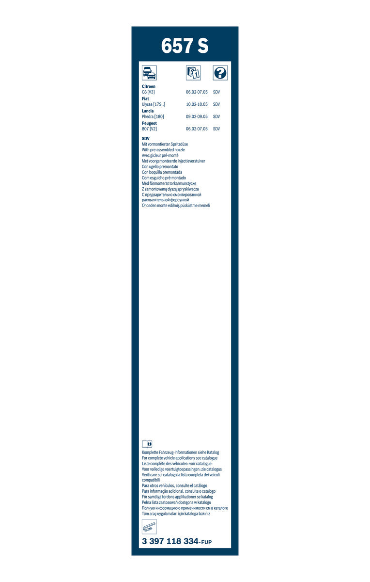 - 1 set of front wiper blades driver side (length: 650 mm) and passenger side (length: 650 mm)