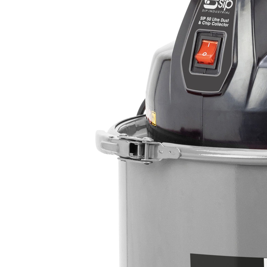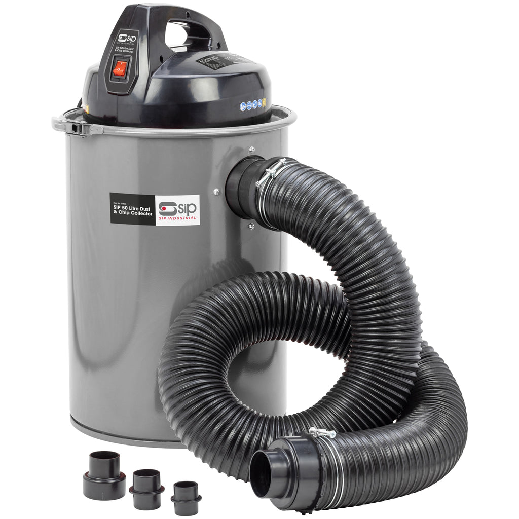The SIP 50ltr Dust & Chip Collector is designed for effective high filtration of dust and debris, comprehensively filtering contaminants down to 0.5µm. With a quick-action clamp, the lid of this drum can be opened easily for simple emptying.• 50ltr collection capacity via heavy-duty drum• Ideal for bench-top machinery in a range of applications• High dust and debris contaminant filtration down to 5um• Entry-level extractor for home and smaller workshops• Lightweight and compact design for easy portability• Quick-action lid clamp for simple drum emptying• Step hose adaptor and 5pc adaptor set included, adapting Ø 100mm to 105mm, 70mm, 45mm, 40mm, and 35mm• Ø 100mm inlet size and 2mtr hose length• SIP 2-Year Standard Silver Warranty