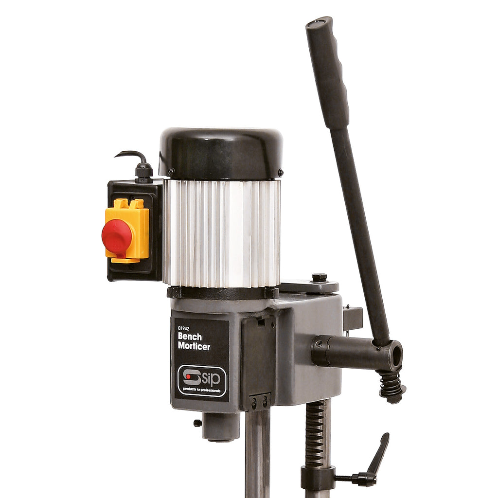 The SIP Bench Morticer can easily cut square or rectangular holes in a variety of timber, providing robust morticing performance but also doubling as a bench-mounted pillar drill, and utilises a heavy-duty clamp that keeps any and all workpieces secure.• 6mm (1/4") to 12mm (1/2") chisel capacity• 76mm max. chisel stroke; 65mm chisel to fence• Built from heavy-duty cast iron for durability• Design doubles as a bench-mounted pillar drill• Heavy-duty clamps keeps the workpiece secure• Large work area for bigger or irregular timber• Integrated NVR switch for increased safety• SIP 2-Year Standard Silver Warranty