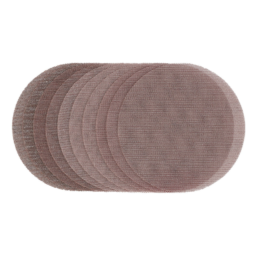 - 10 x Mesh sanding discs of assorted grit, 150mm