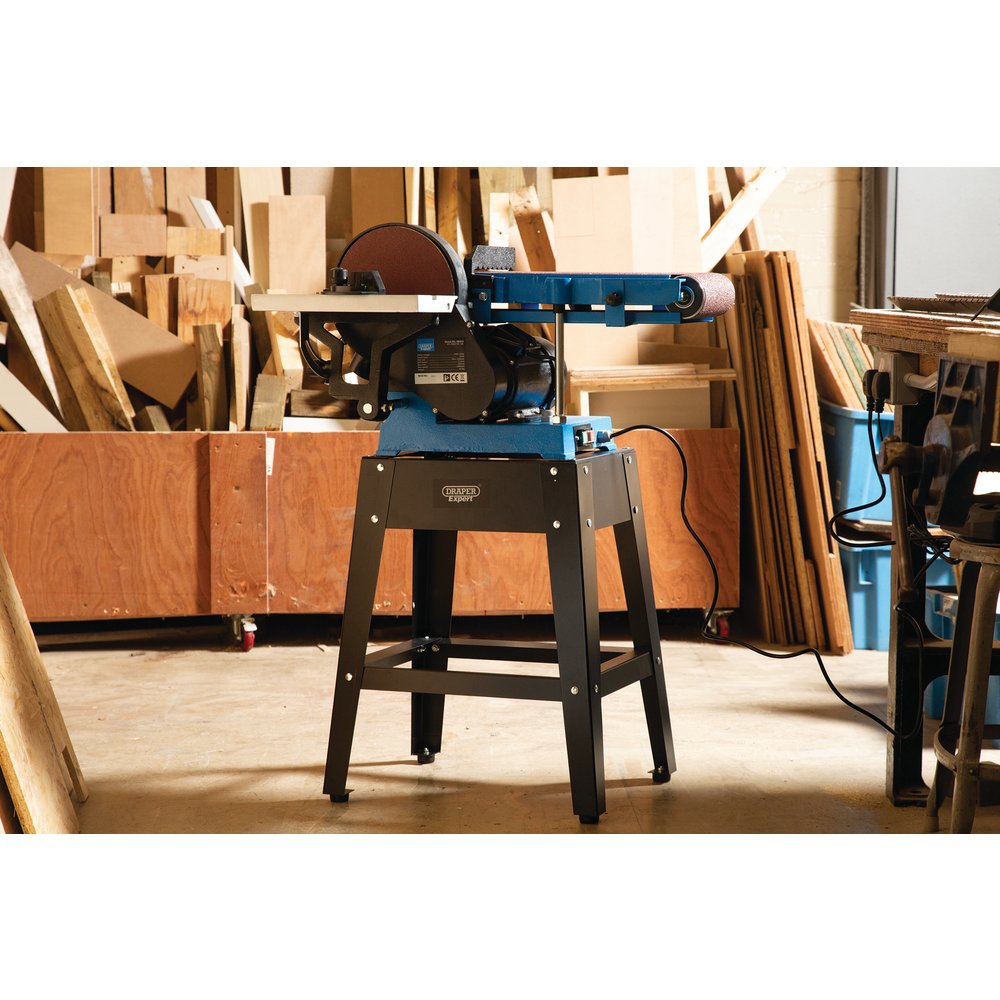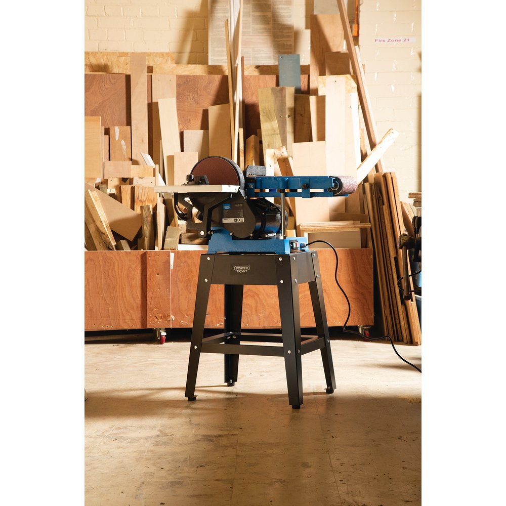This robust belt and disc sander is powered by a 750W motor. The 200mm sanding belt can be positioned horizontally or vertically. The 200mm diameter disc is provided with its own worktable and mitre gauge. The disc worktable can pivot from 0-45 degrees for accurate angle sanding. The discs are easily changed through the ‘hoop and loop’ mechanism. The machine has a no volt switch for safety. To keep the workspace clean and safe, the sander has a dust filter bag and clamp. It also has a dust extraction outlet for connection to a vacuum. The machine is designed and manufactured for sanding wood and similar materials and should not be used to abrade or grind metal. Supplied with sanding belt and disc.
