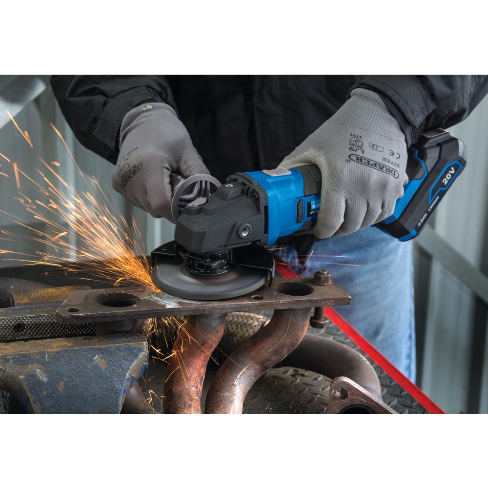 Features: Part of the Draper Storm Force® 20V Power Interchange series, rear hand grip, auxiliary side handle, grinding guard, spindle lock button, locking flange. Batteries and chargers are available separately. Draper Storm Force® 20V interchangeable battery system allows you to combine one battery with any of the tools within the 20V Storm Force series (not compatible with Draper Storm Force® 10.8V).