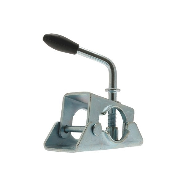 The Maypole 427 Split Clamp 42mm will enable you to use a jockey wheel or prop with a diameter of up to 42mm. This pressed steel clamp is strong enough to support most jockey wheels and has also been drilled with two M10 fixing holes which are exactly 105mm apart for fitting. The handle of the clamp has been coated in rubber end grip. If you thinking about putting a jockey wheel or prop onto your trailer or caravan, this has to be the clamp to buy.