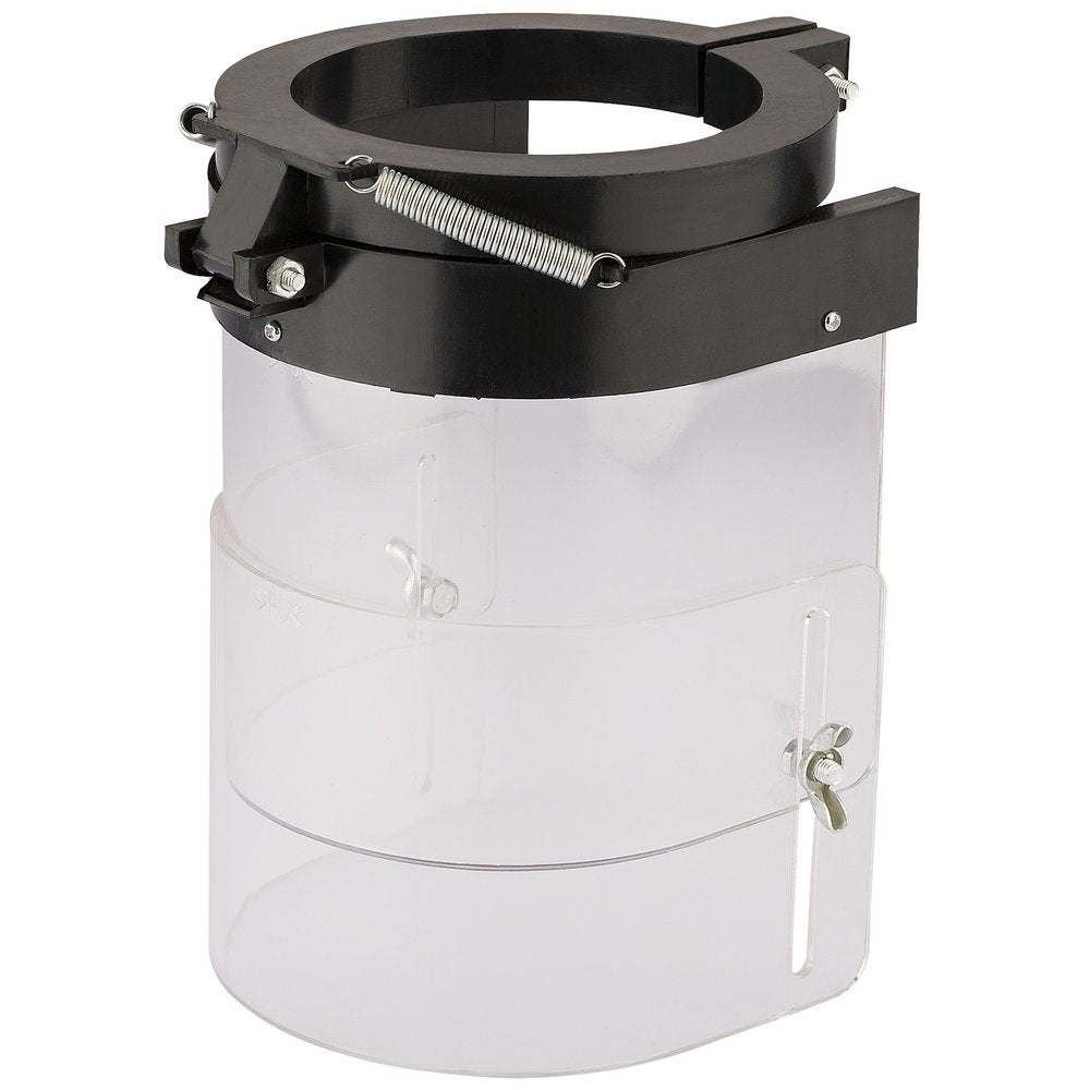 Telescopic chuck guards providing a smooth protective telescopic action as the drill penetrates the workpiece. The outer slotted visor can also be set in a locked position. The guards listed are ideal for most drilling machines with a collar size as stated.