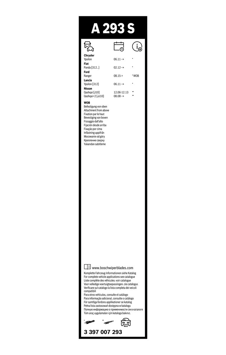 - 1 set of front wiper blades driver side (length: 600 mm) and passenger side (length: 380 mm)