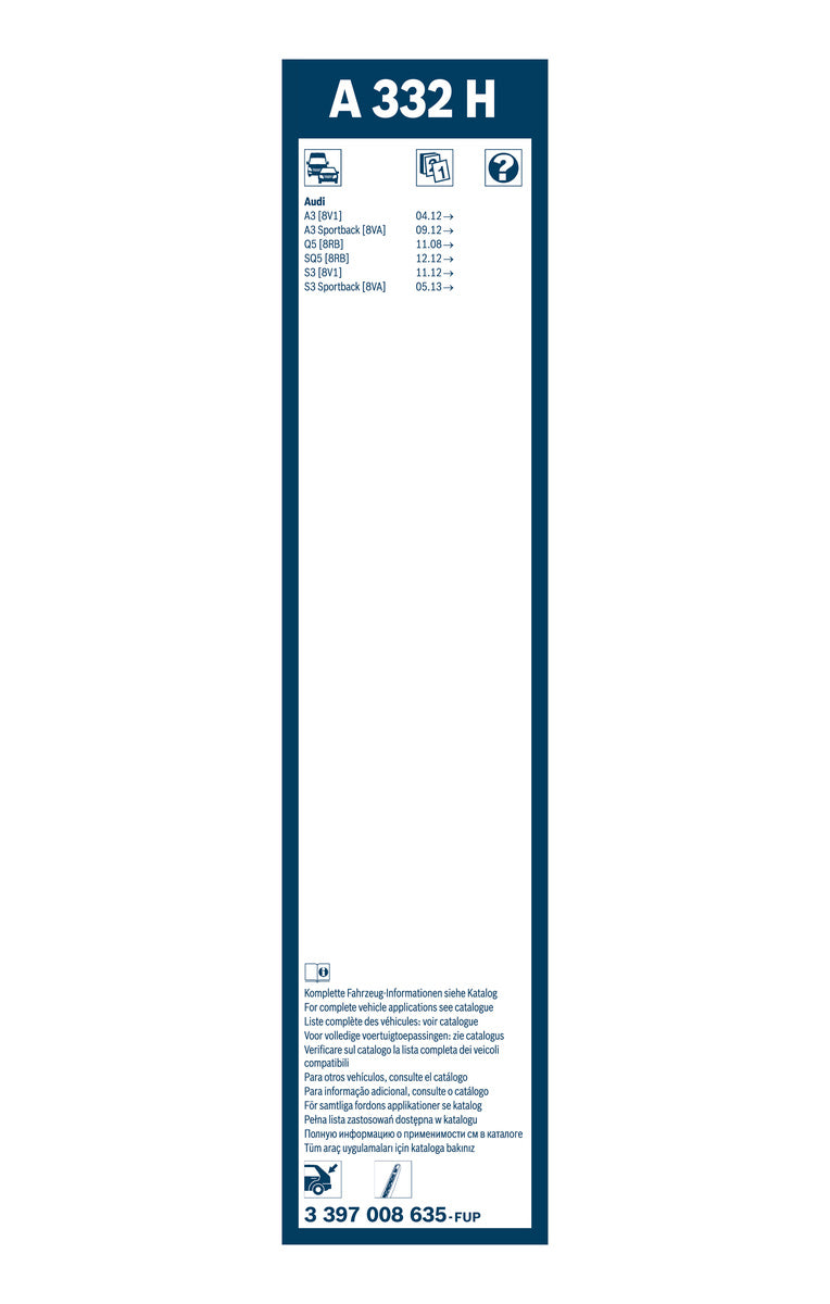 • Innovative Bosch wiper rubber technology: For better, quieter and longer wiping performance