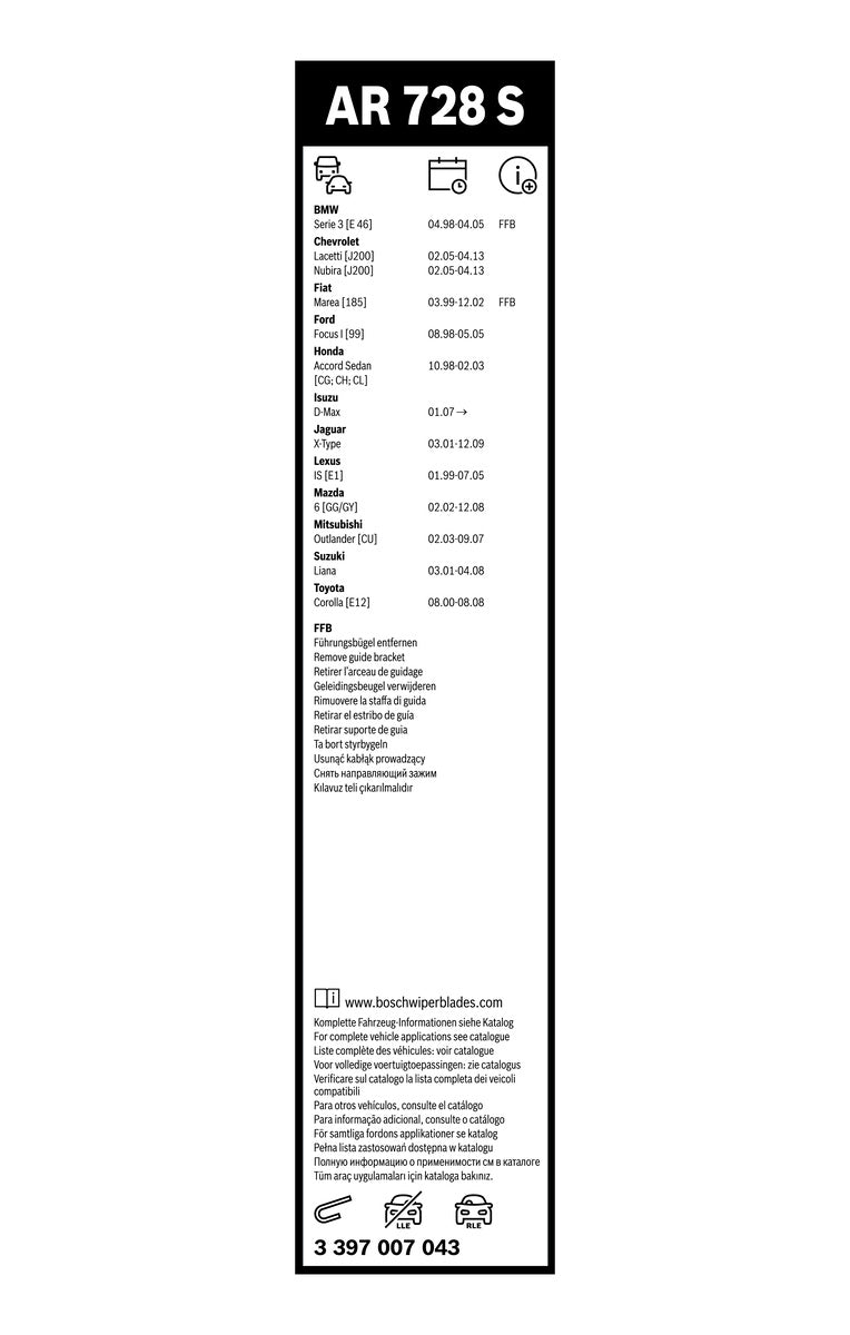 - 1 set of front wiper blades driver side (length: 550 mm) and passenger side (length: 475 mm)
