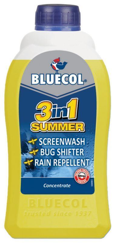Bluecol 3-in-1 Summer Screenwash is the smartest screenwash available. Not only does it remove road grime, dust, tree sap and other dirt instantly, but it also applies an invisible layer of Rain Repellent. This coating combines a special technology that prevents water and other contaminants from sticking to your windscreen, drastically improving your driving experience especially during poor weather. Rain Repellent also actively prevents bugs from sticking to your windscreen.