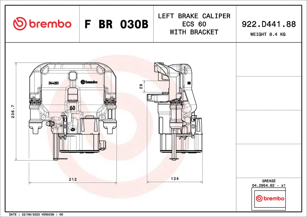 Brembo aluminium brake caliper kits are dedicated to car owners who are passionate and care deeply about the aesthetics of their vehicle. Fitment information. Rear left Axle, Caliper diameter 60mm
