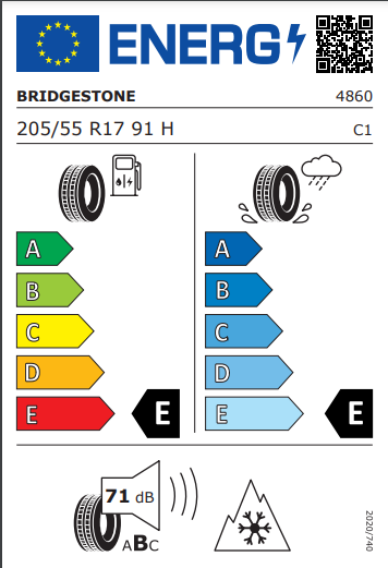 About this tyre - Size - 205/55/17 91H, Fuel Efficiency - E, Noise (dB) - 71, Wet Grip - E, Runflat - YesAs the only component on your vehicle that actually makes contact with the road surface, tyres are critical for safety when driving.How do you read the markings on a tyre?The markings on a tyre indicate its size, load index and speed rating. A typical tyre marking looks like this - 205/55 R16 W 91. What is the UK legal tyre limit?The minimum tread depth required by law in the UK is 1.6mm. This applies to the central three-quarters of the tyre’s width and its entire circumference. Many car manufacturers, however, advise changing your tyres once the tread is down to 3mm to be on the safe side. What are tyre speed ratings?A tyre speed rating is the maximum speed a particular tyre is legally approved for. The rating is represented by a letter displayed on the tyre sidewall. It will always be the last letter in the sequence.