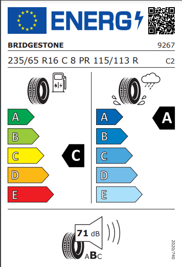 Size - 235/65/16 115R, Fuel Efficiency - C, Noise (dB) - 71, Wet Grip - A, Runflat - No