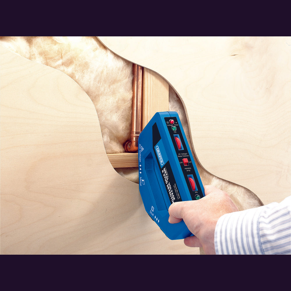 - Detects live or dead electricity cables, metallic water pipes, nails and other metal objects and wood studs in partition walling which can be located without causing surface damage