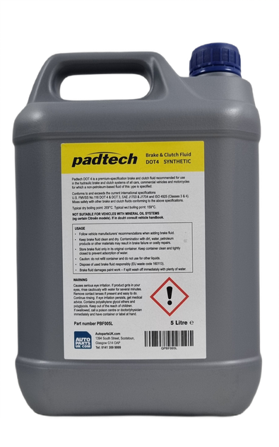 Padtech DOT 4 LV is a premium specification brake and clutch fluid recommended for use within the hydraulic brake and clutch systems of all cars, commercial vehicles and motorcycles for which a non-petrolum based fluid of this type is specified.