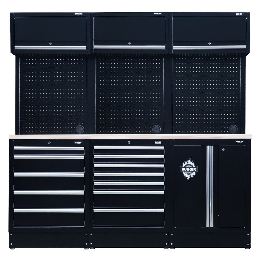 - BUNKER® lets you create a bespoke storage solution — add cabinets, drawers, worktops and accessories tailored to your workshop layout and workflow