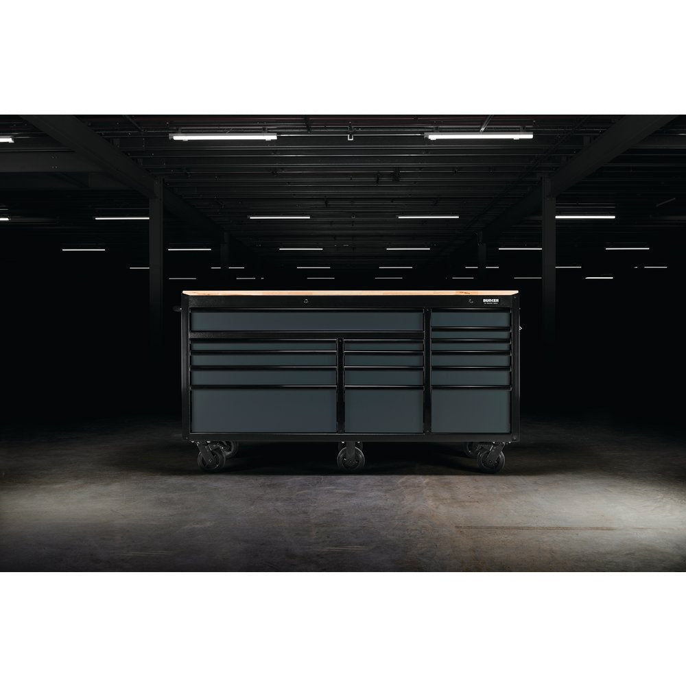 • 1 x BUNKER® Workbench Roller Tool Cabinet, 15 Drawer, 72", Grey