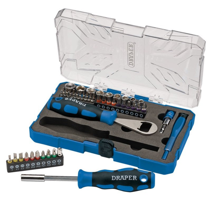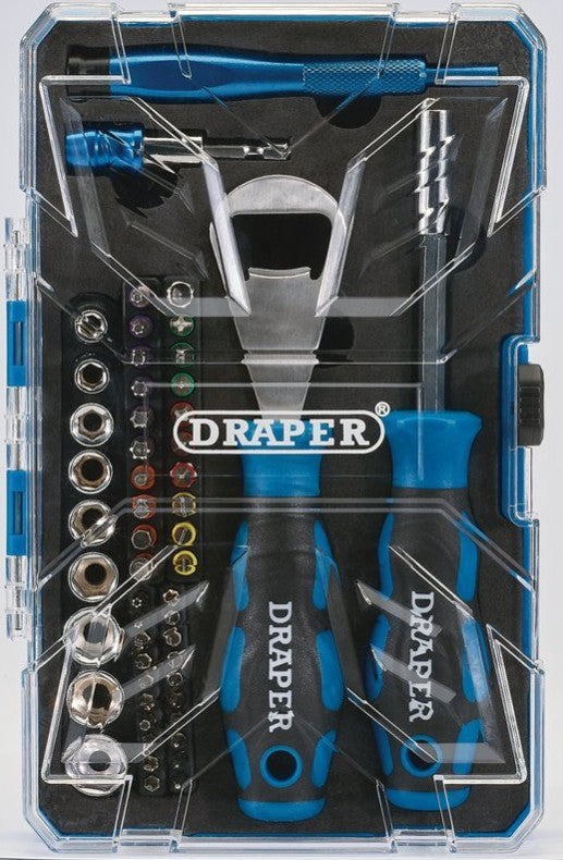 This 54 piece tool kit contains a comprehensive range of high quality Draper hand tools, and a handy bottle opener, all stored in a sturdy case, perfect for keeping your tools safe and organised ready for use.