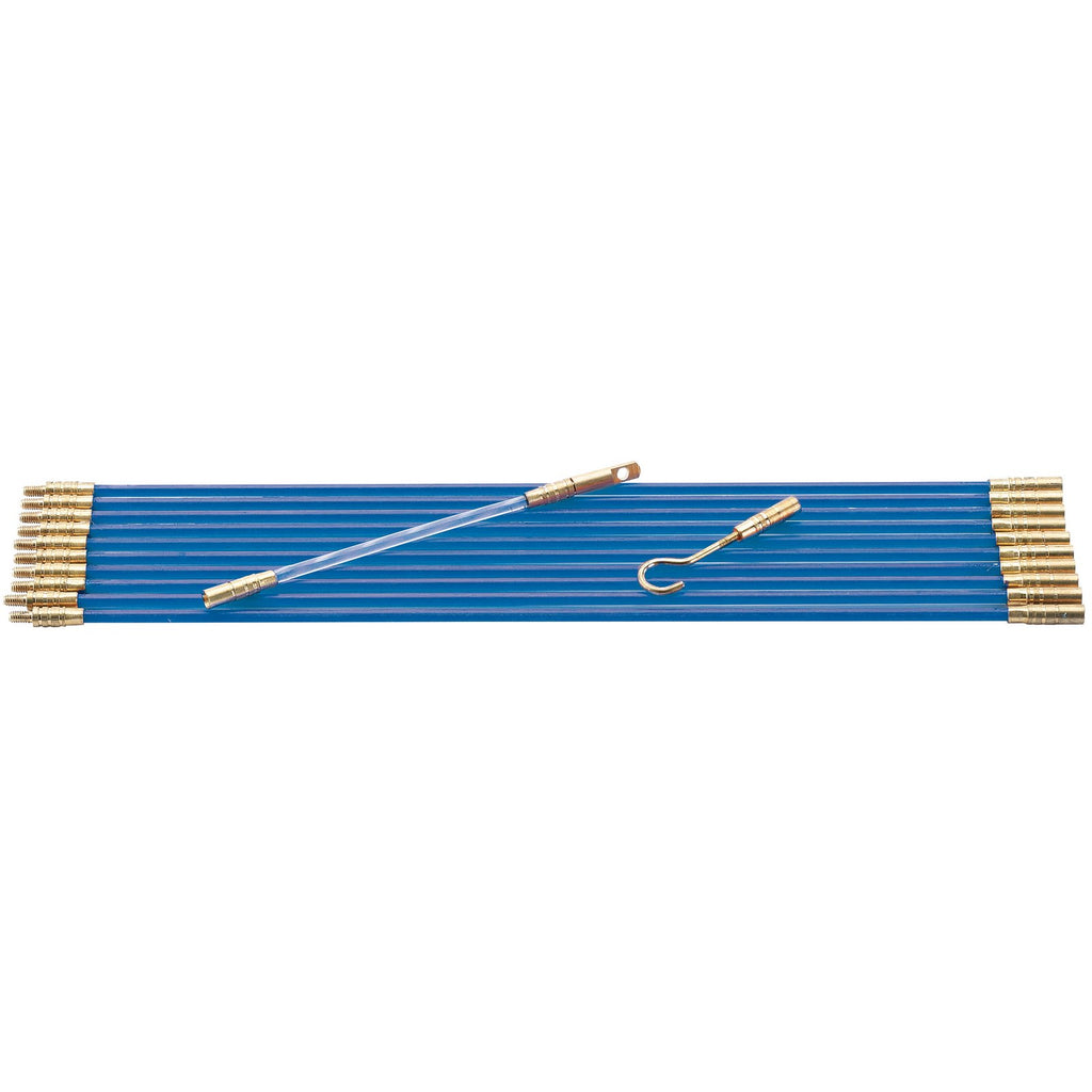 Ten 330mm long reinforced screw - in polyester rods ideal for gaining access to wire and cables under floorboards, ceiling cavities, trunking and the like. Supplied with hook end and flexible joint with ring end. These rods are suitable for storage in an average - sized tool box. in storage tube.