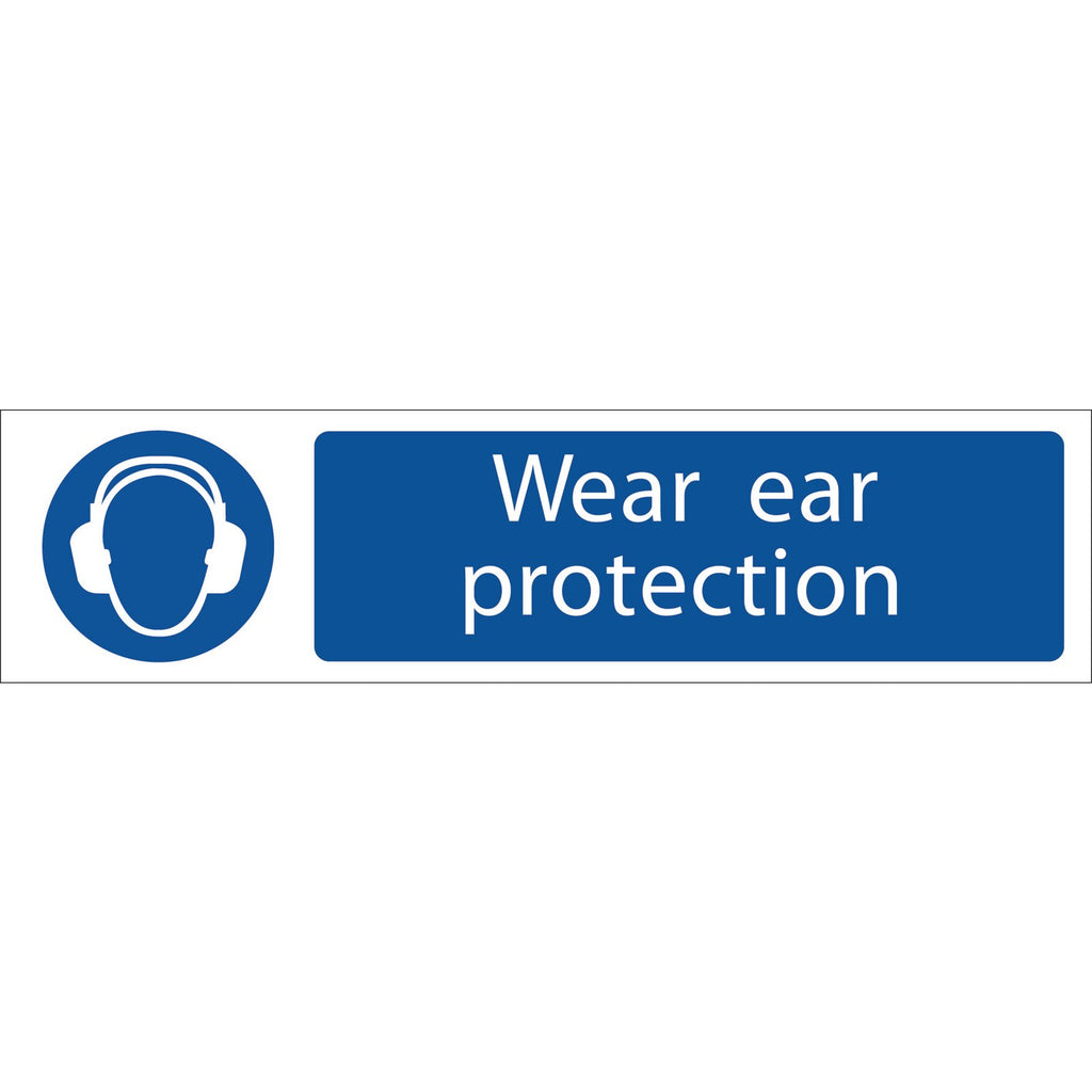 Manufactured from 1mm PVC with strong adhesive for fixing to the wall. Printed with UV and fade resistant ink stating 'Wear Ear Protection'. Size 200 x 50mm.