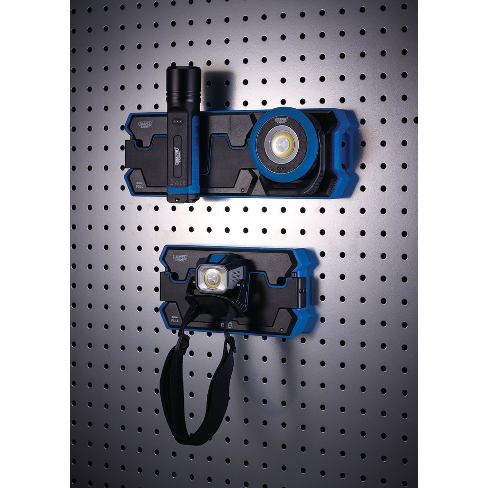 Fast wireless dual charging pad capable of charging up to two devices simultaneously. Fitted with strong magnetic panels on the front and back to hold devices with a metal surface in place while charging. The LED charging indicator flashes green when charging. There is a pull-out phone holder suitable to hold QI enabled (wireless charging) smart phones up to 166 x 80 x 10mm in size. The charging pad is mountable to a non-metallic surface or wall using the two screw hole fixings (screws not supplied). IP20 rated. Compatible with the Draper range of wireless/USB rechargeable lights including Mini-Flood Light (Stock No. 65688), Head Torch (Stock No. 65689) and Hand Torch (Stock No. 65690) - sold separately. Supplied with USB-C charging cable and 3-pin UK plug.