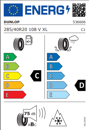 About this tyre - Size - 285/40/20 108V, Fuel Efficiency - C, Noise (dB) - 75, Wet Grip - D, Runflat - NoAs the only component on your vehicle that actually makes contact with the road surface, tyres are critical for safety when driving.How do you read the markings on a tyre?The markings on a tyre indicate its size, load index and speed rating. A typical tyre marking looks like this - 205/55 R16 W 91. What is the UK legal tyre limit?The minimum tread depth required by law in the UK is 1.6mm. This applies to the central three-quarters of the tyre’s width and its entire circumference. Many car manufacturers, however, advise changing your tyres once the tread is down to 3mm to be on the safe side. What are tyre speed ratings?A tyre speed rating is the maximum speed a particular tyre is legally approved for. The rating is represented by a letter displayed on the tyre sidewall. It will always be the last letter in the sequence.
