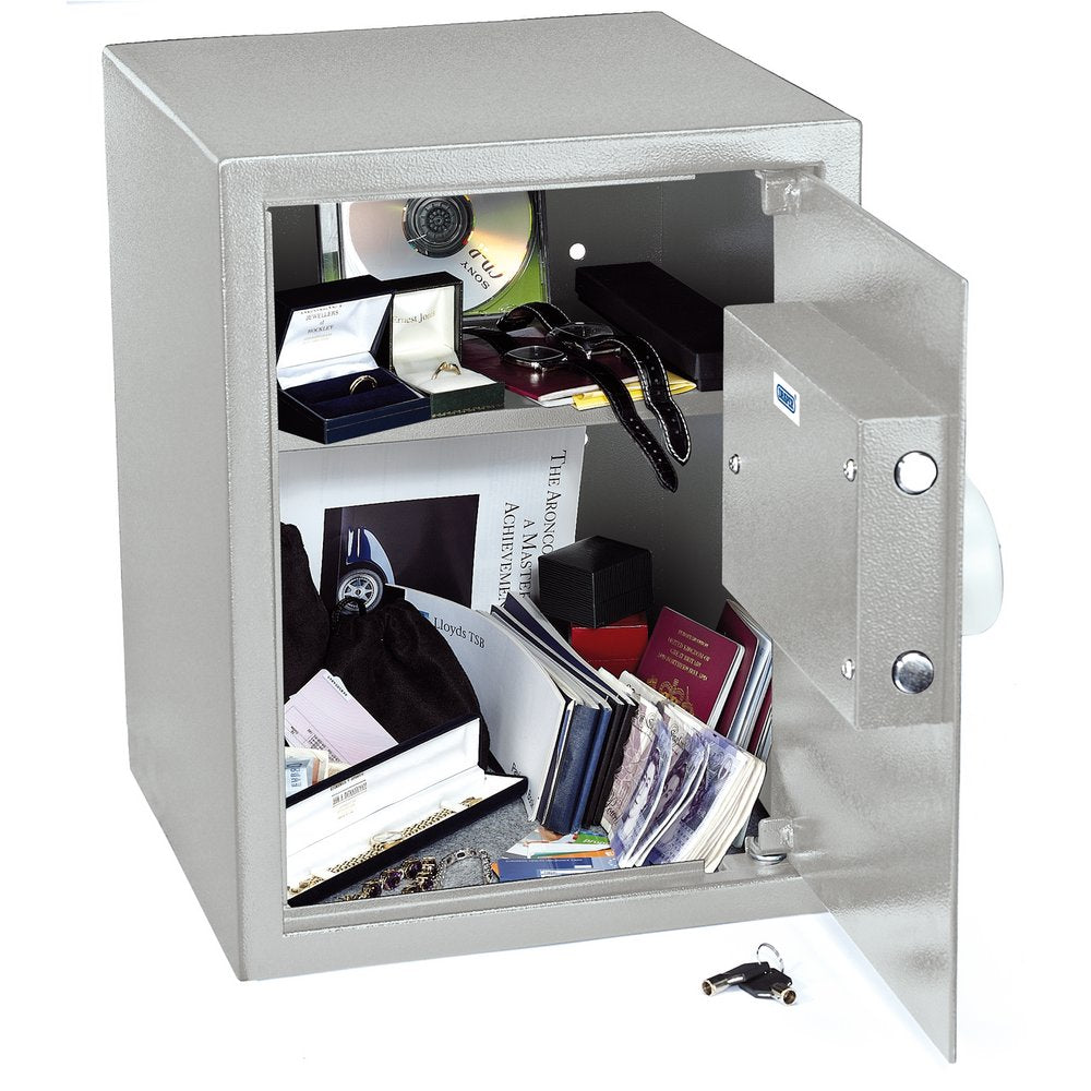 Solid steel construction with easy to use electronic keypad with 6 digit security code system. Safe has pre - drilled fixing holes and Supplied with security fixings, two keys and 4 x AA batteries.
