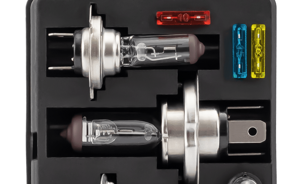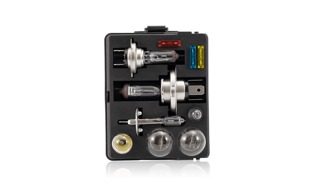 Emergency replacement car bulb & fuse kit; Includes H4, H1 & H7 55w headlight bulbs